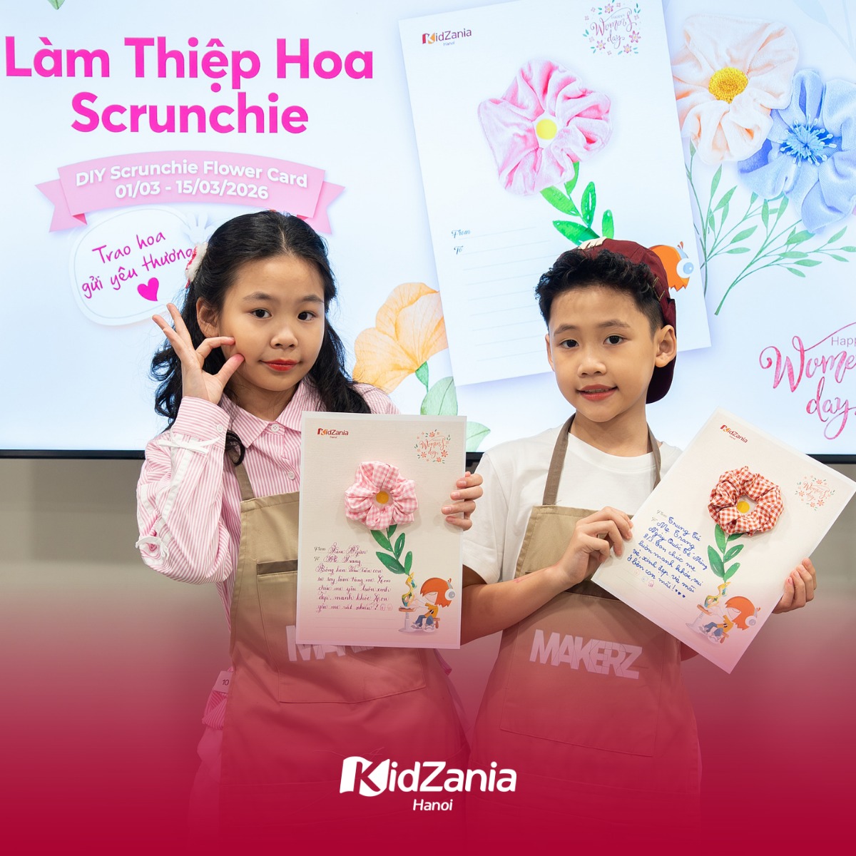 Từ 01/03 – 15/03, mời các bạn nhỏ ghé thăm Xưởng Thủ công để cùng thực hiện món quà siêu đặc biệt: THIỆP HOA SCRUNCHIE!