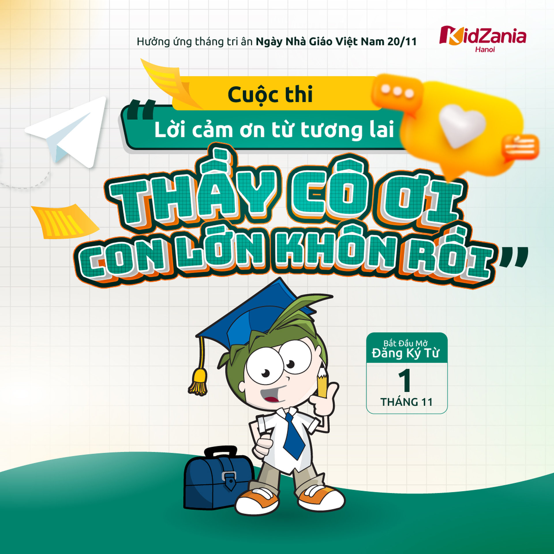 🍀 HOW TO JOIN: Round 1: 1. Access the link: https://forms.gle/jhy6BWSRawwcnCE36 2. Submit one photo of your children wearing career uniform (photos taken at KidZania are encouraged!) 3. Write a short letter (under 300 words) with the theme: “A Thank-You Letter from the Future – Teachers, I’ve Grown Up!” 🕐 Submission period: November 1 – November 14 Round 2: KidZania will select the 20...