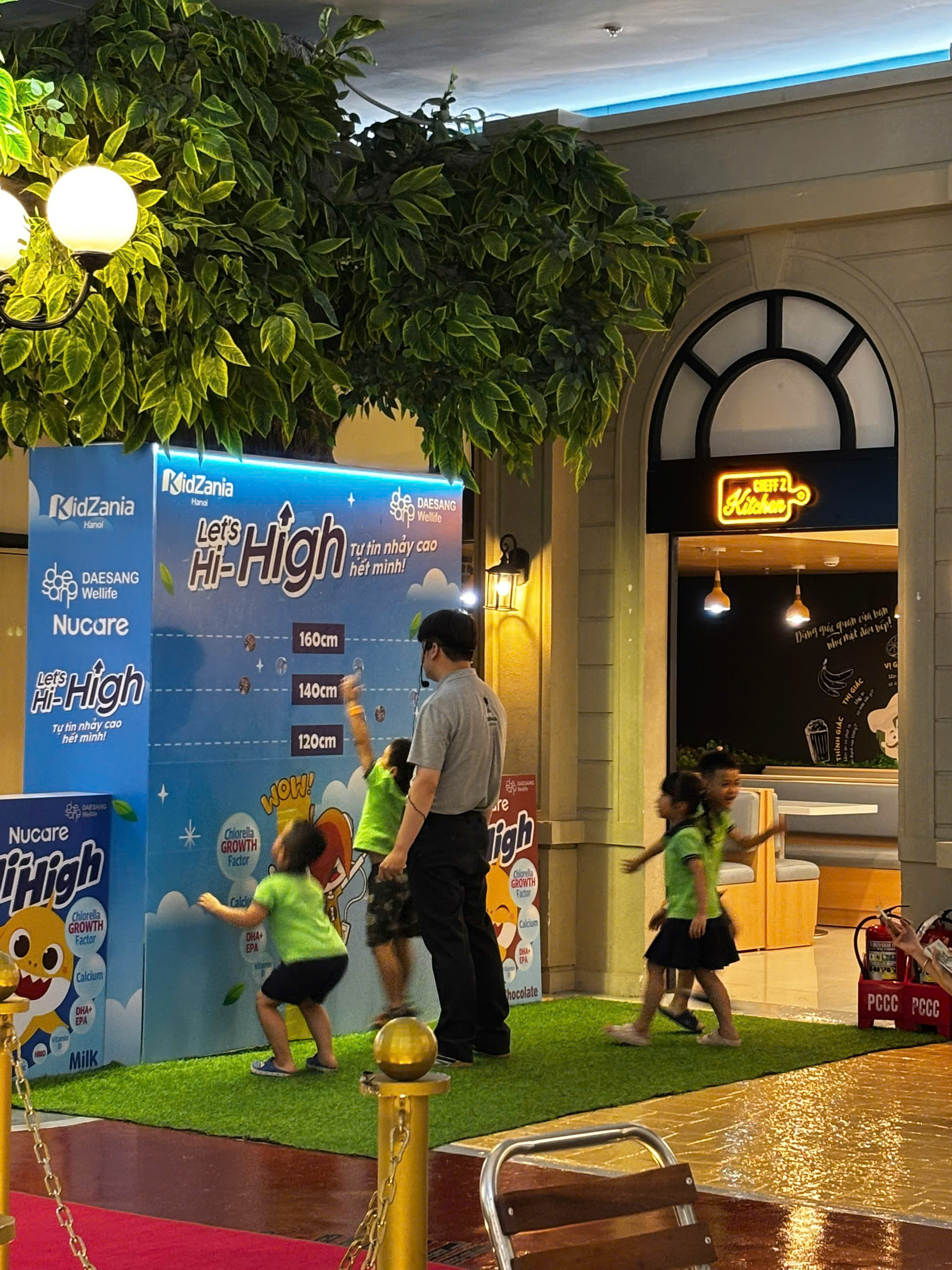 | Nội dung hoạt động | Tham gia thử thách Nhảy cao: Mỗi trẻ tham gia sẽ có một chiếc nhãn dán riêng. Trẻ cần phải bật nhảy thật cao để đánh dấu nhãn dán ở vị trí cao nhất có thể. Người tham gia sẽ được nếm thử 2 hương vị của Nucare Hi-High và nhận quà tặng miễn phí từ Daesang Wellife. |